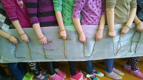 progimnazijos mokinių savivaldos aktyvistai ir koordinatorė Jovita