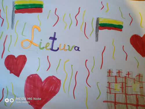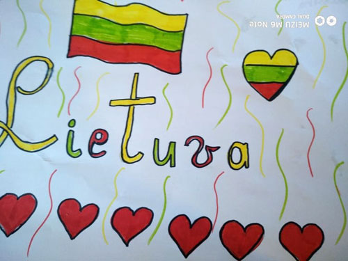 1d klasės mokiniai skaitė E.Daciūtės eilėraštį "Lietuva", svarstė ką jiems reiškia tėvynė ir bandė patys kurti eiles Lietuvai. Mokytoja Agnė Petraitienė