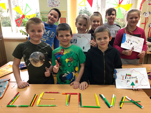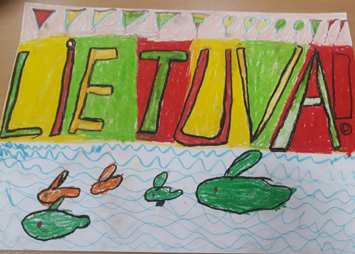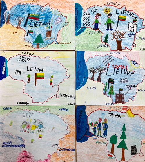 4 klasės moksleivių kūrybinė veikla „Mano spalvota Lietuva“, mokytojos M. Ptašinskaja ir M. Dorniak