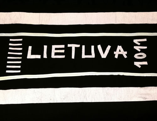 78 Žodį Lietuva parašiau iš šviesą atspindinčios medžiagos. Pavaizduotas kelias, kuriuo Lietuva eina saugiai 1011metų. Fotografuota tamsoje, kad geriau išryškėtų detalės, tarsi Tėvynė laukia visų sugrįžtančių dieną ir naktį...