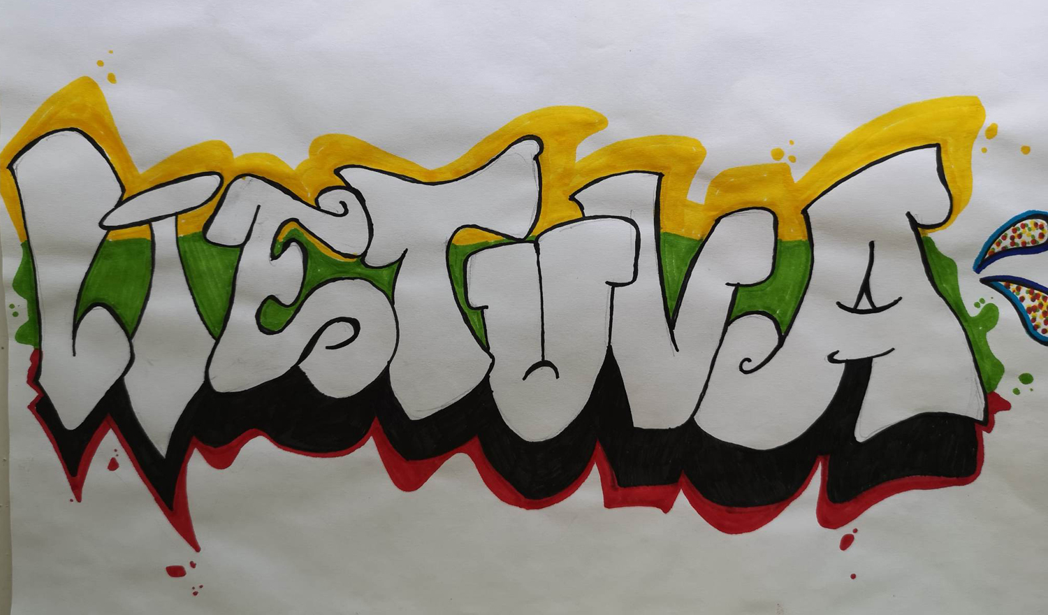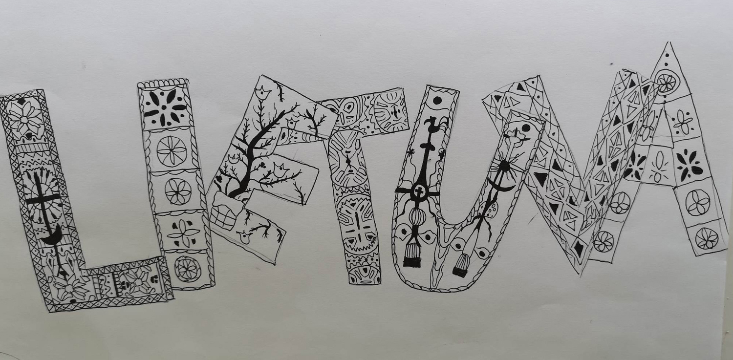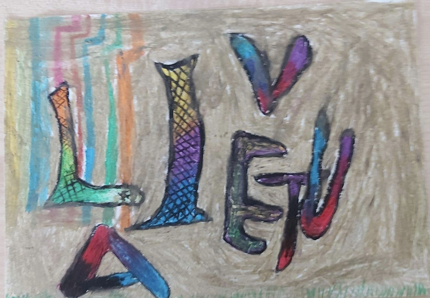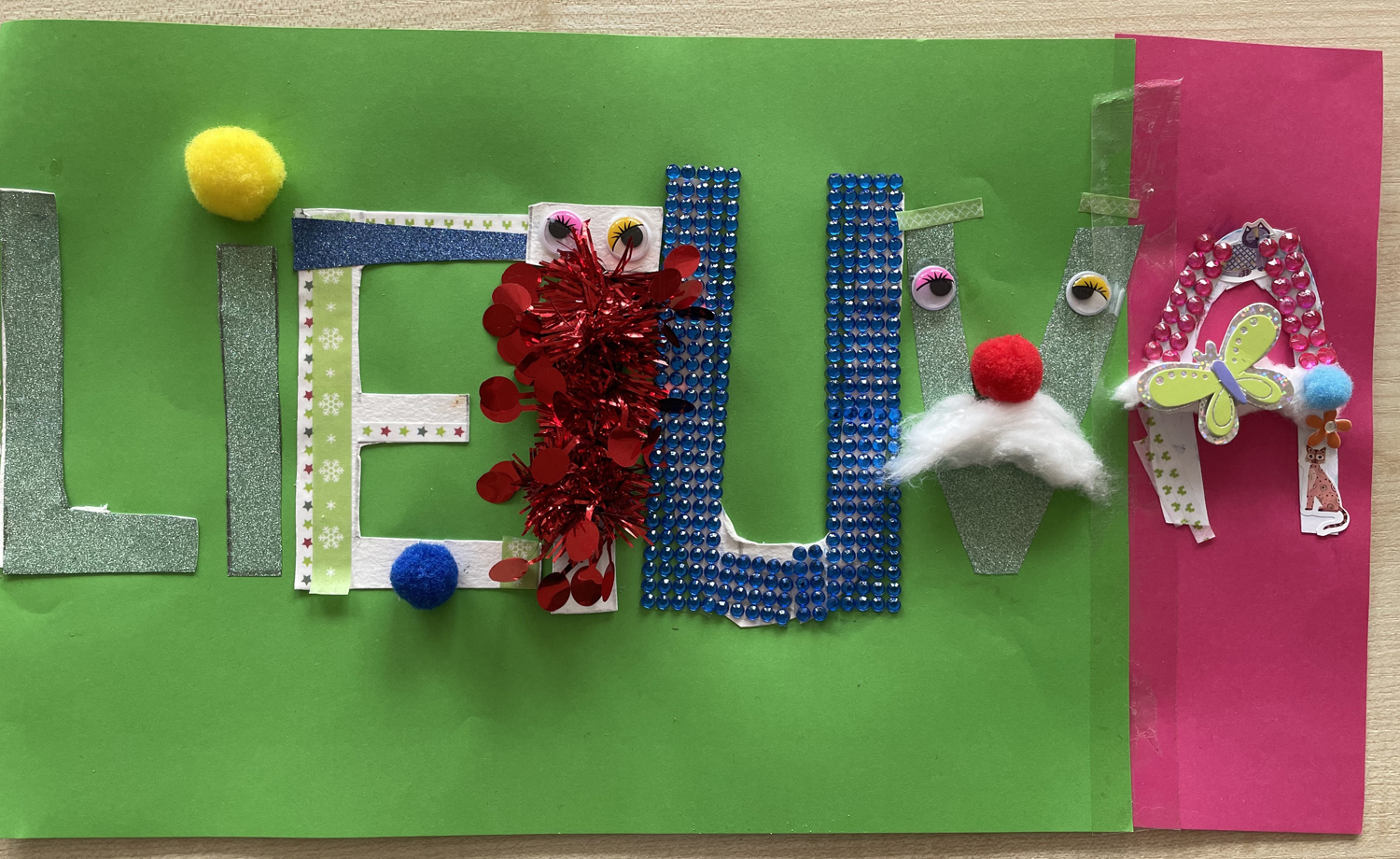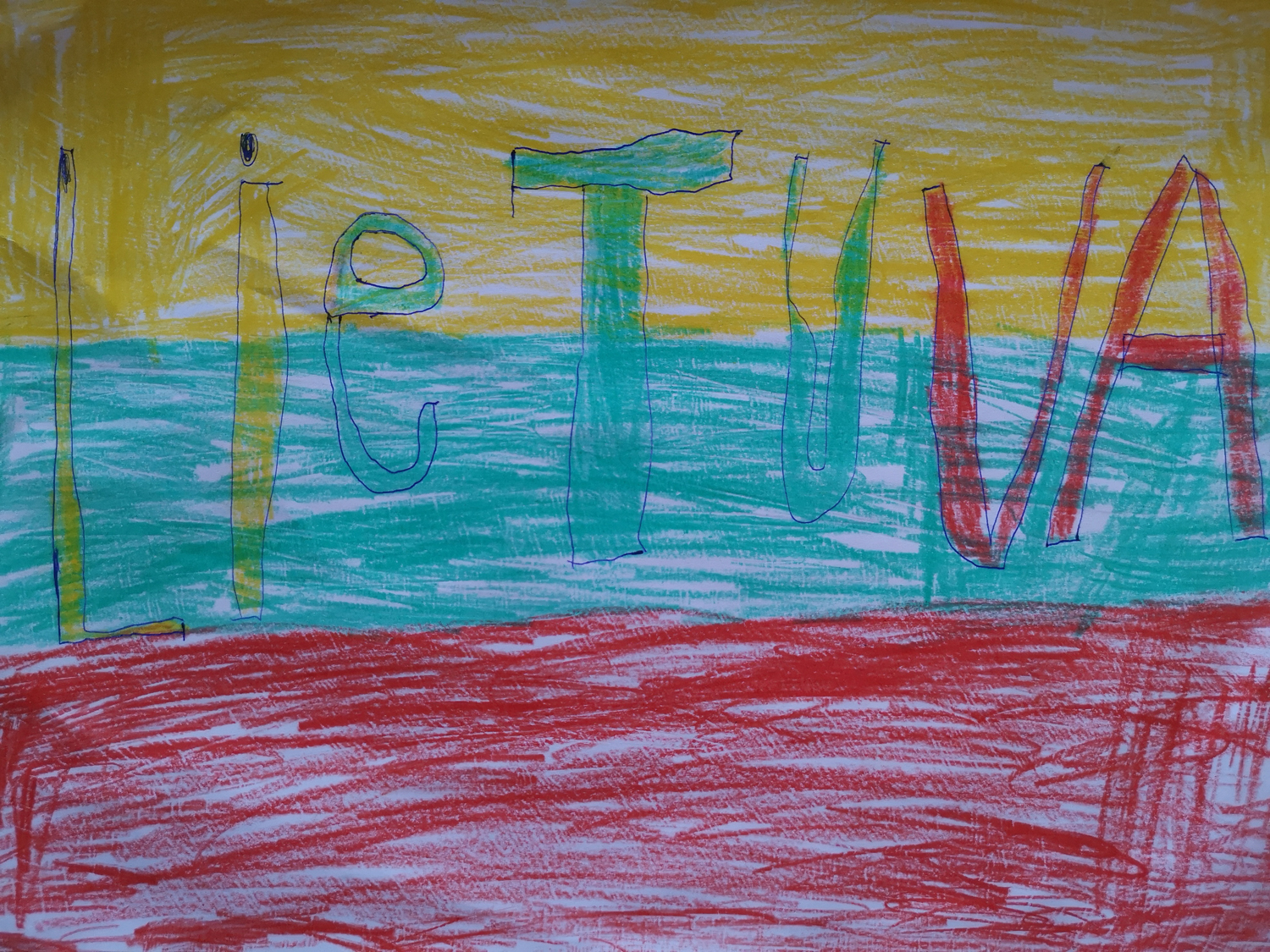 Pasirinkta technika 3a klasės vaikai piešė Lietuvos vardą. Lankstinių būrelis "Origamis" išlankstė mažas gėlytes ir sudėliojo žodį Lietuva.