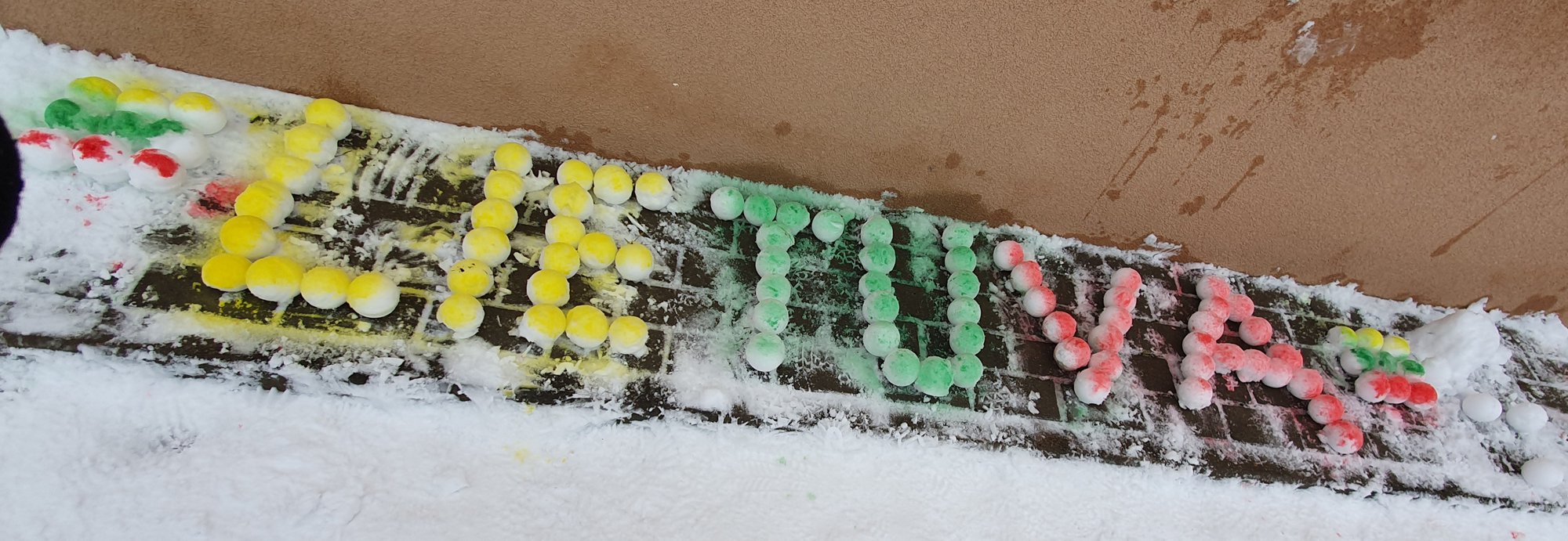 Vaikai Formavo sniego kamuoliukus, dėliojo raideles pagal šabloną, bei nupurškė spalvotu guašu