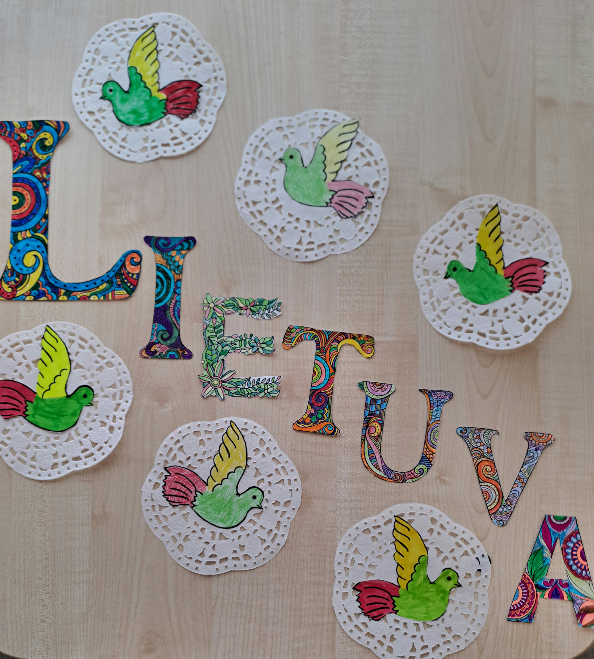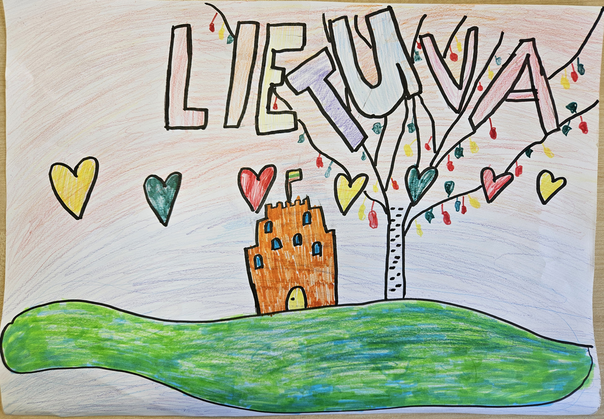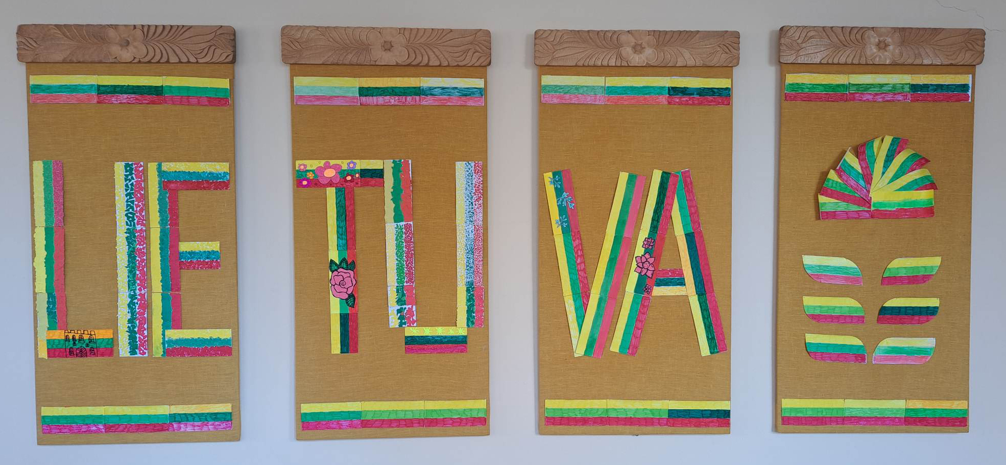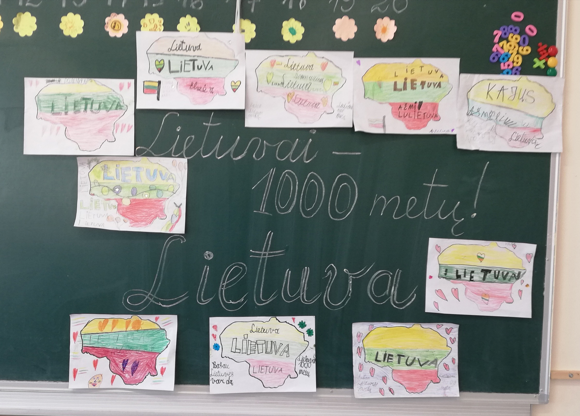 5d klasės mokinių sukurtos kompozicijos, kuriose vaikai vaizduoja Lietuvos gamtos grožį, istorinius pastatus bei kitus jiems svarbius tėvynės simbolius. Dailės mokytoja ekspertė Karolina Norkienė