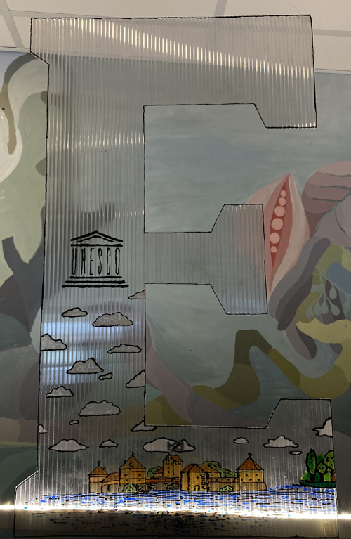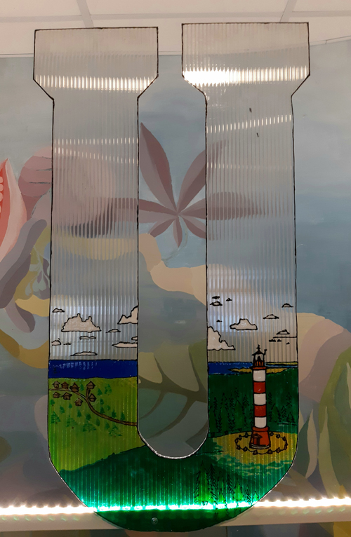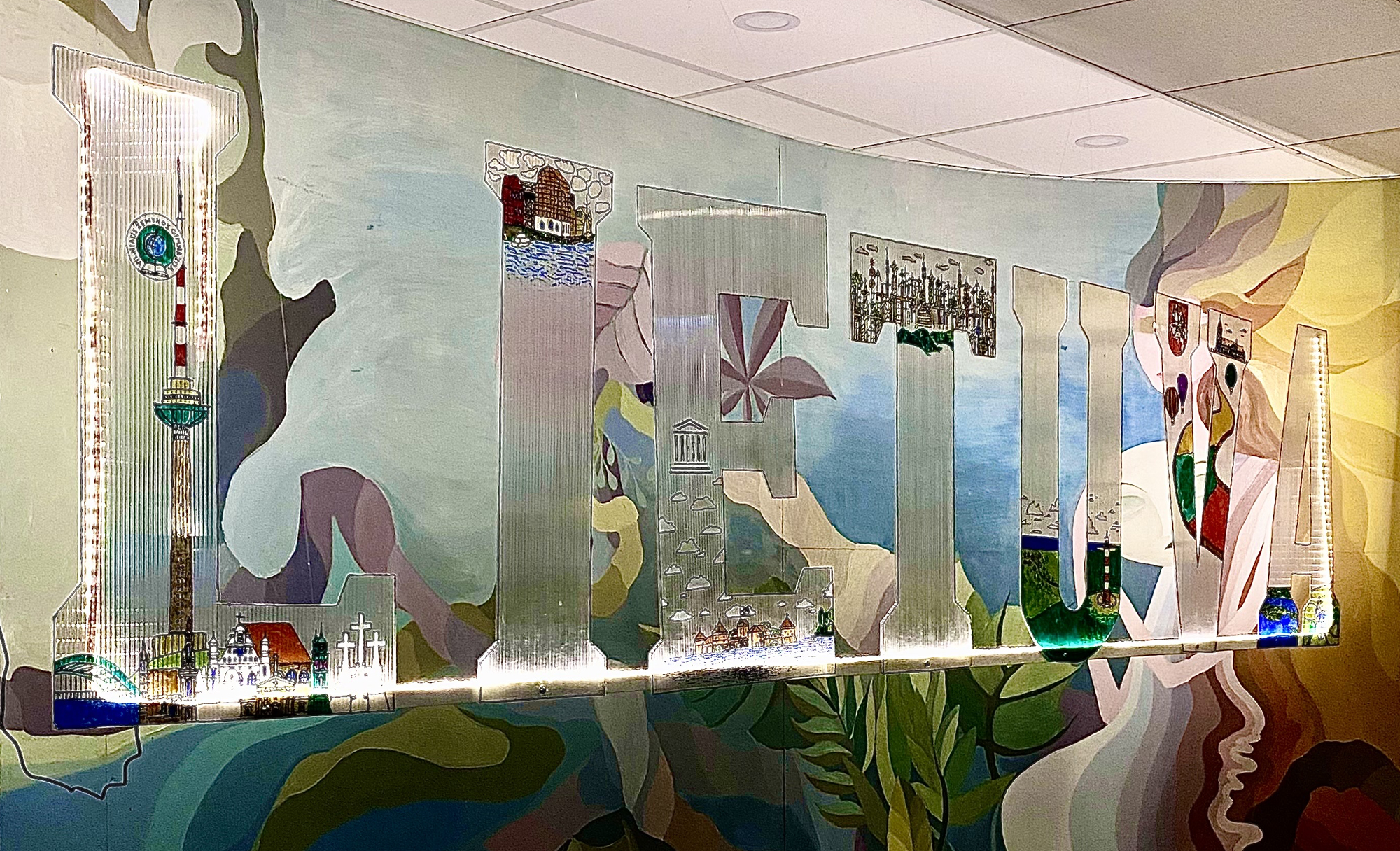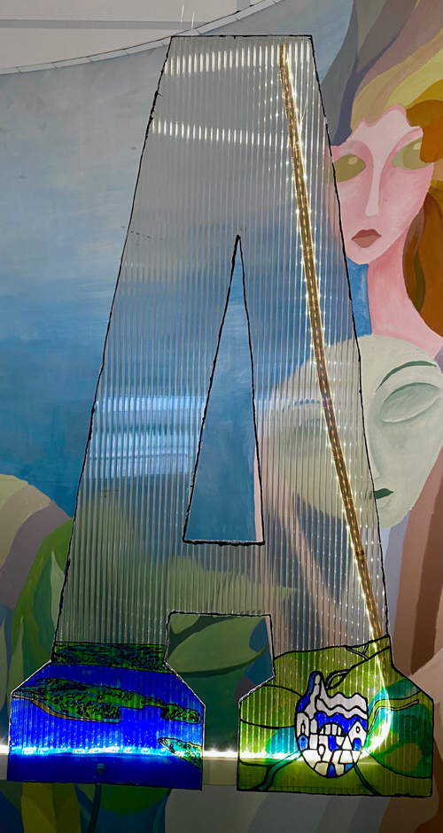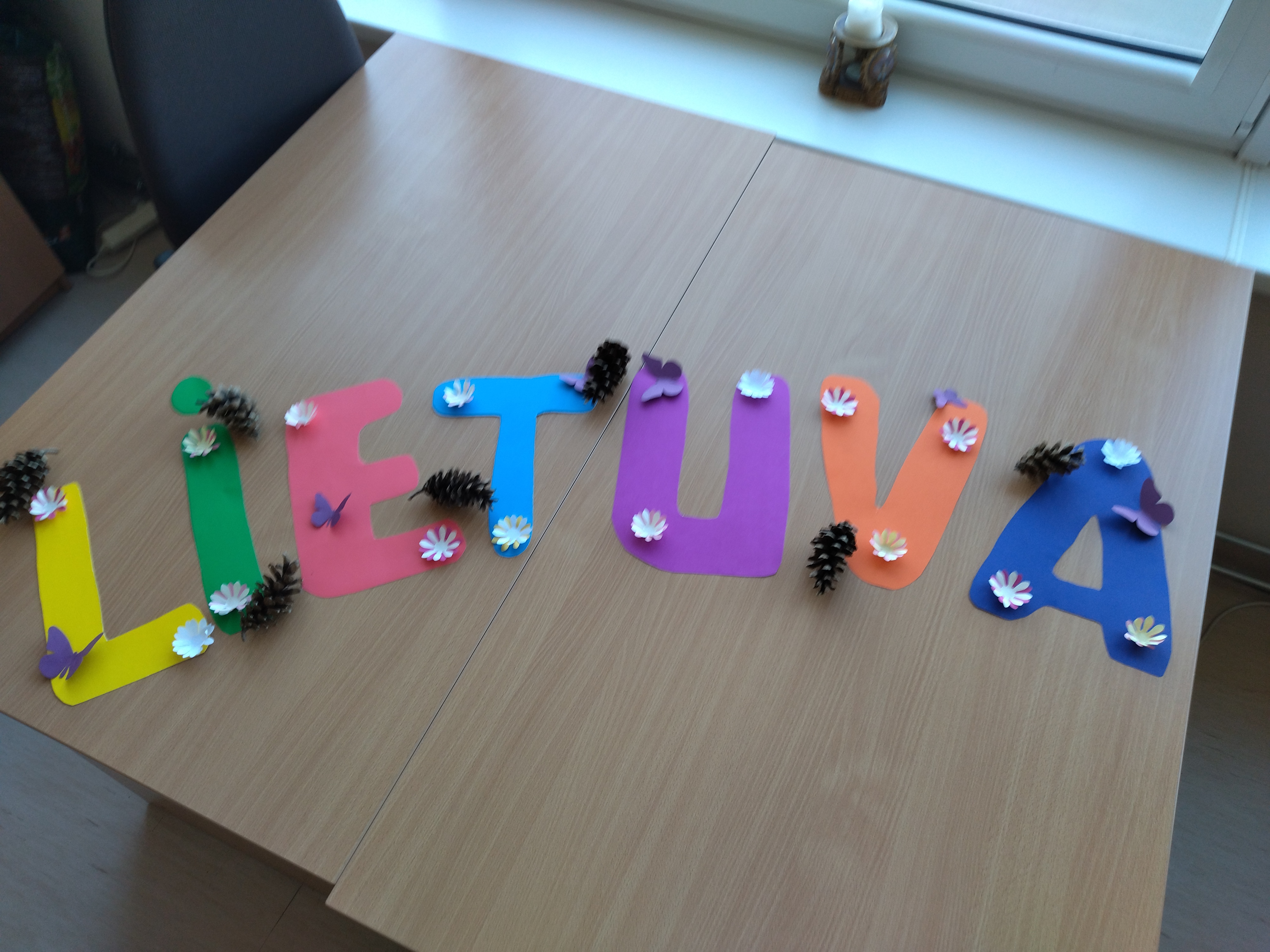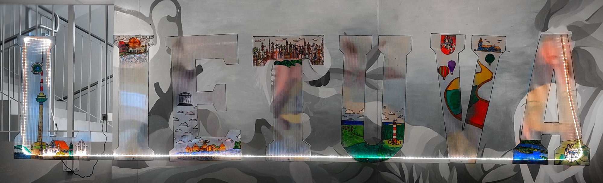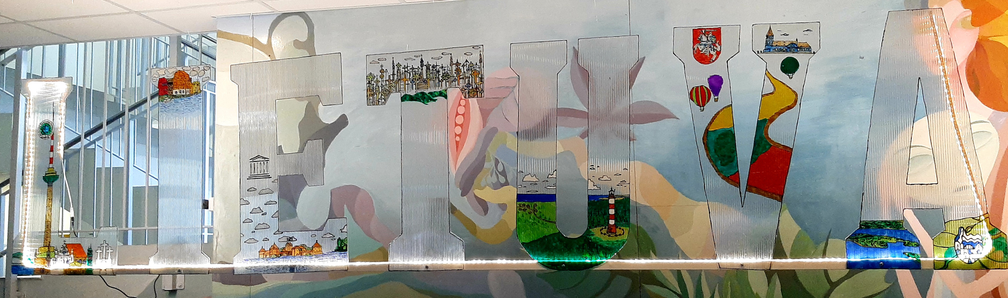 III–IV kl. kūrybos darbas Lietuvai. Medžiagos polikarbonatas ir stiklo dažai, darbo vadovė Sigita Kaminsienė