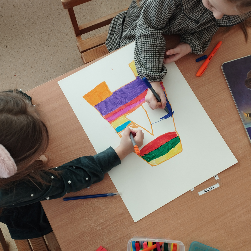 Priešmokyklinio amžiaus (6 m.) „Lašiukų“ grupės vaikų: Arijaus ir Amelijos bendras darbas, mokytoja Simona Erleckienė