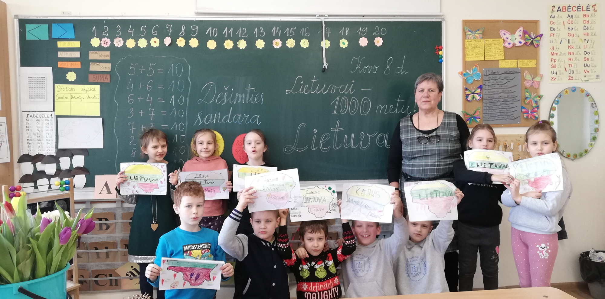 1a klasės mokiniai, mokytoja Stase Stulginskiene