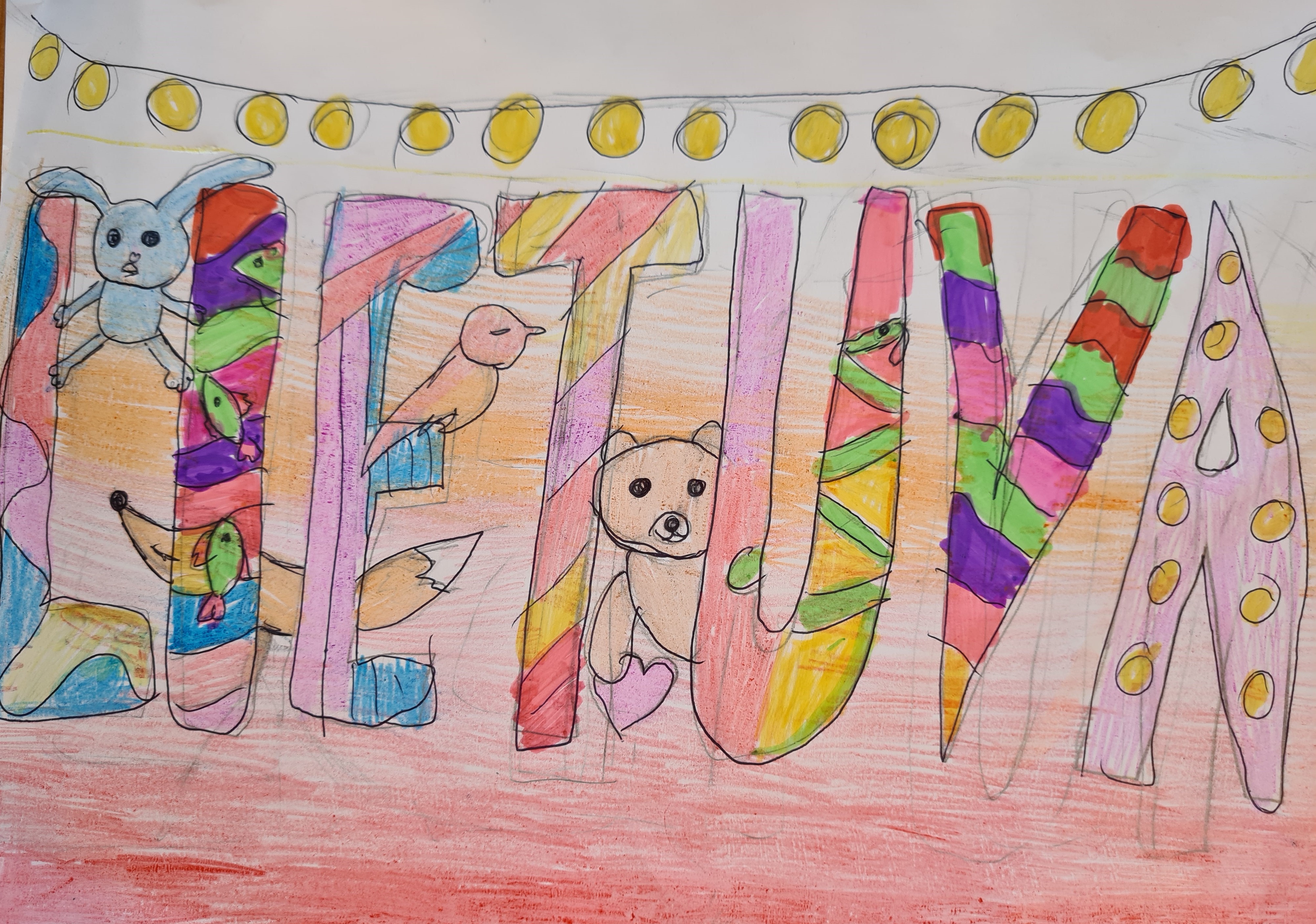 Piešiniai 2b klasės mokinių: Viačeslavo P., Sofijos M.,Milenos G.,Liamo B.,Gabijos M., Valerijos G., ir Ramintos M. Mokytoja Danutė Tumalovičienė