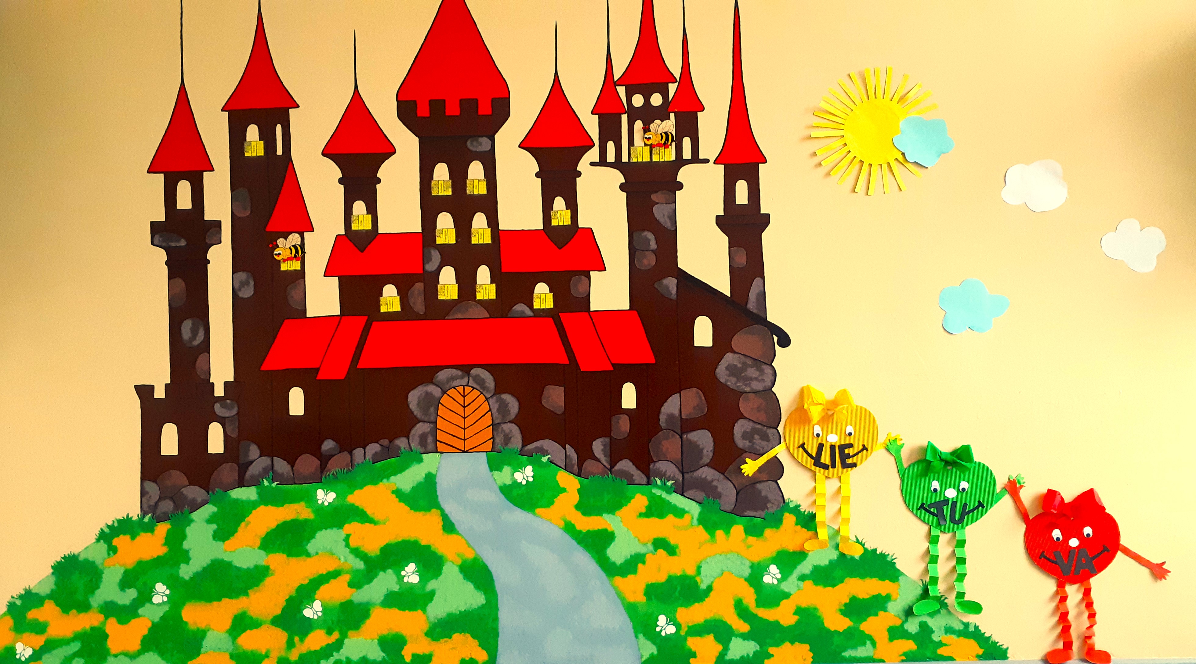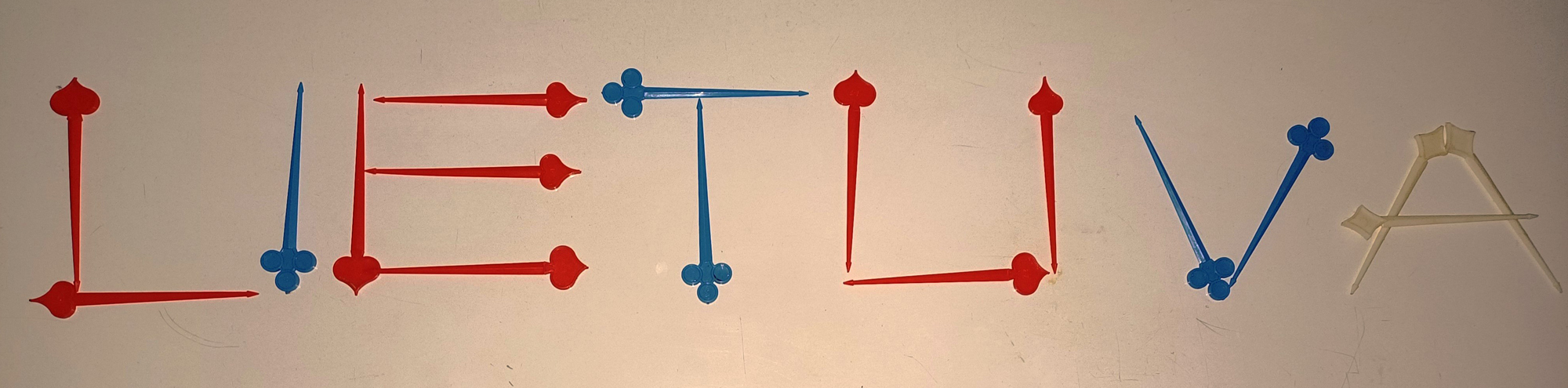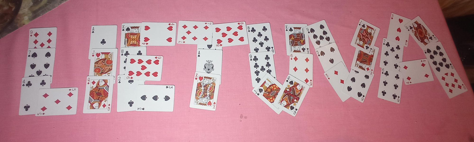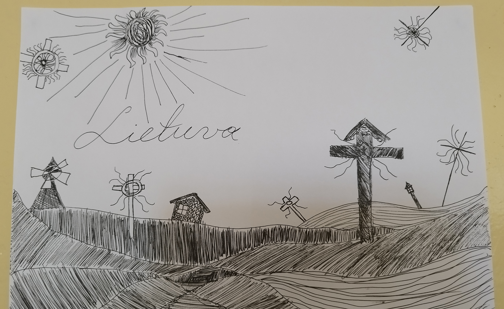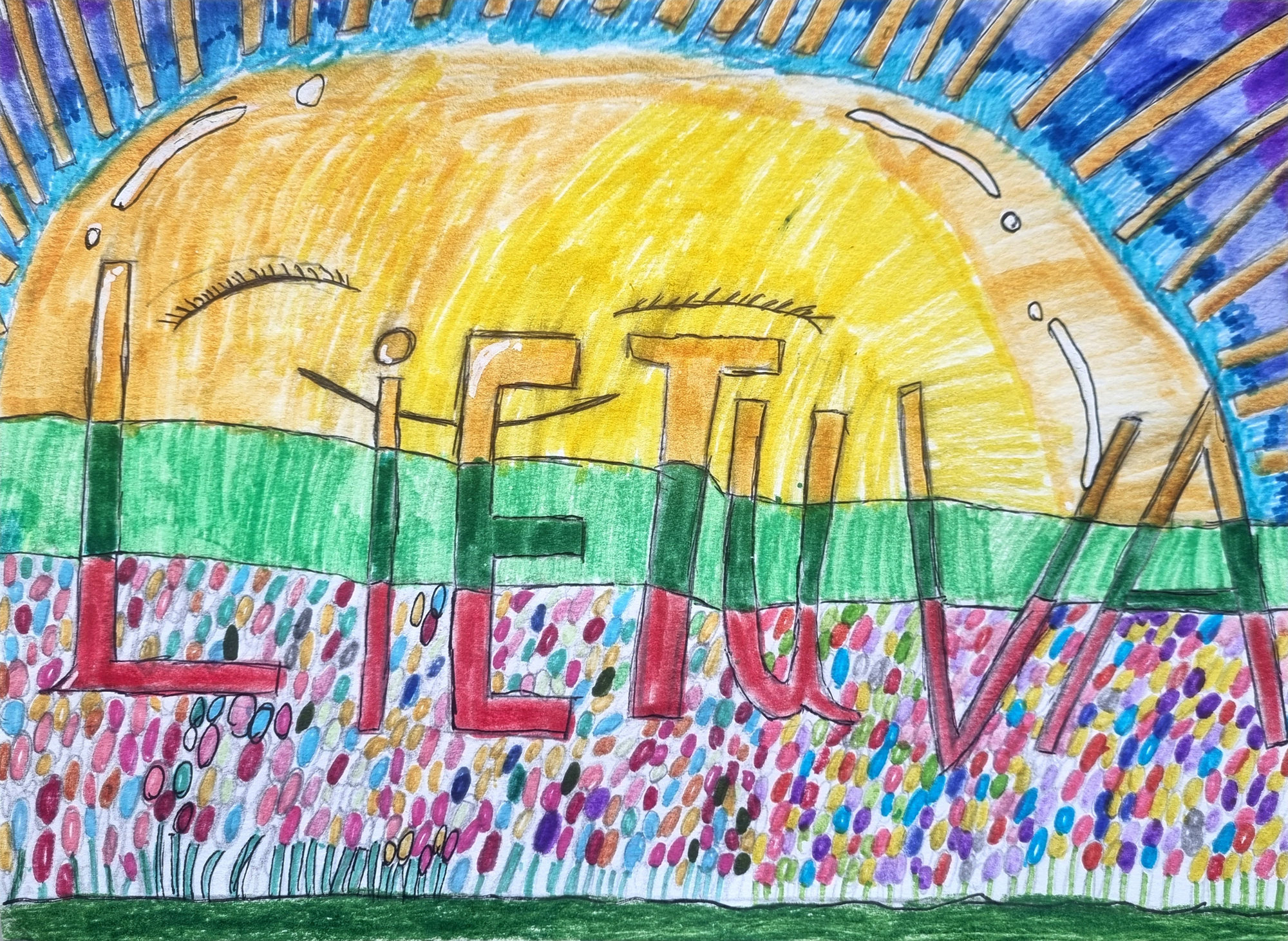 Lietuvos vardui užrašyti panaudojome džiovintų gėlių ir smilgų, žirnių, švelnių „kačiukų“, žirginėlių, bei Lietuvos auksu vadinamo gintaro. „Kiškučių'' grupės vaikai kruopščiai suklijavo Lietuvos raides. Mokytoja Dainora Valančauskienė