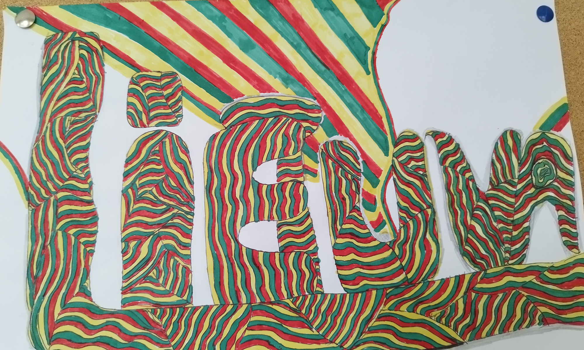 Jaunieji skaitytojai (10-13 m.) užrašė Lietuvos vardą su tautinio rašto motyvais, bibliotekininkė Dainora Valančauskienė