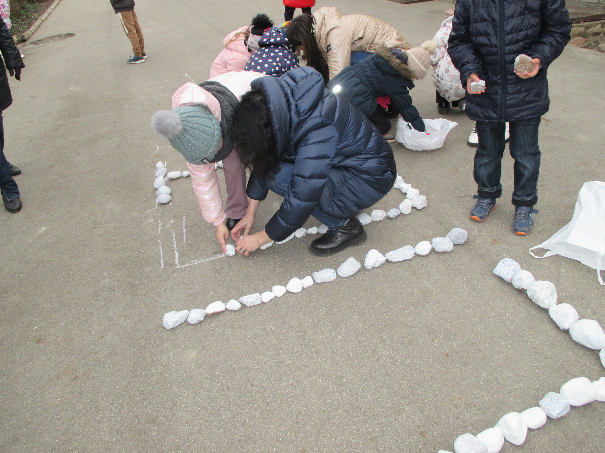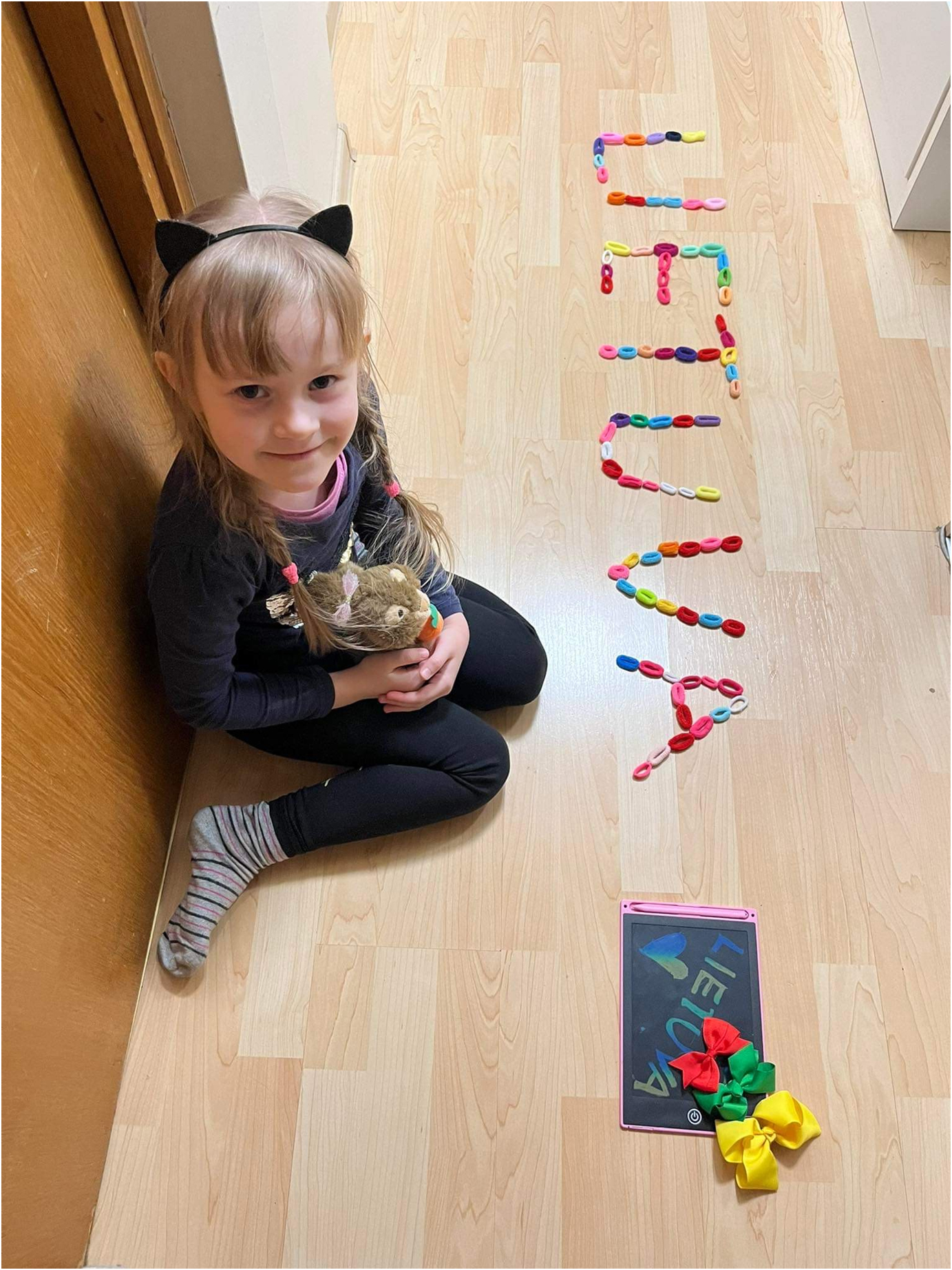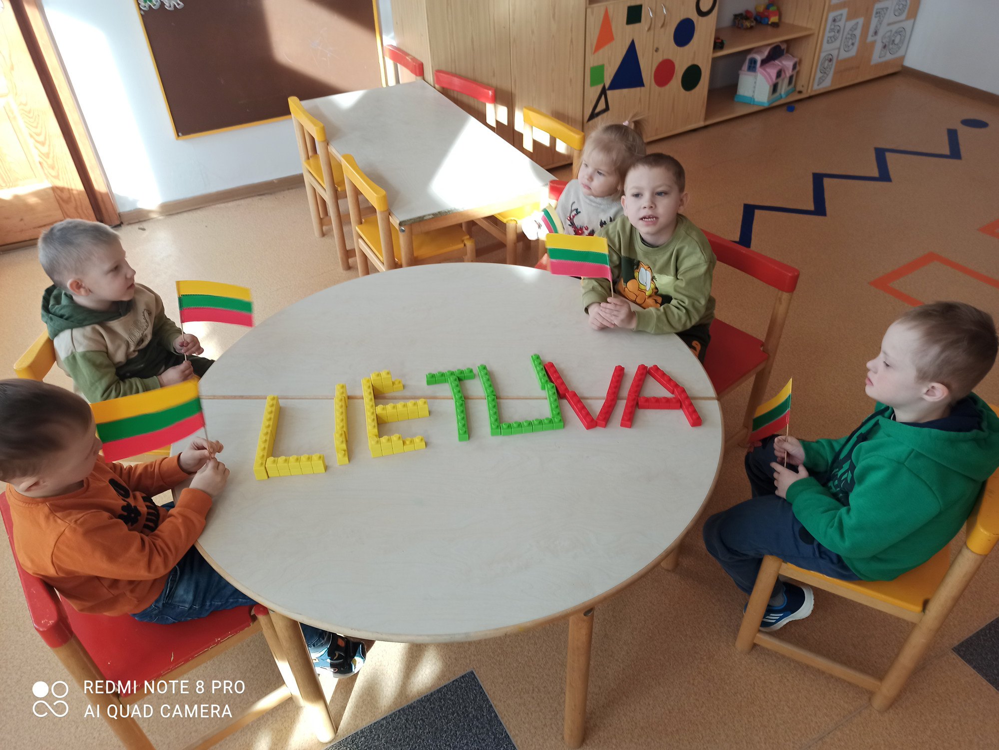 „Boružėlės“ grupės vaikučiai siunčia Lietuvai šilčiausius lnkėjimus. Lietuvos vardą vaikai sudėliojo iš kaladžių, konstruktorių, sagų, akmenukų ir dėlionės detalių. Mokytoja