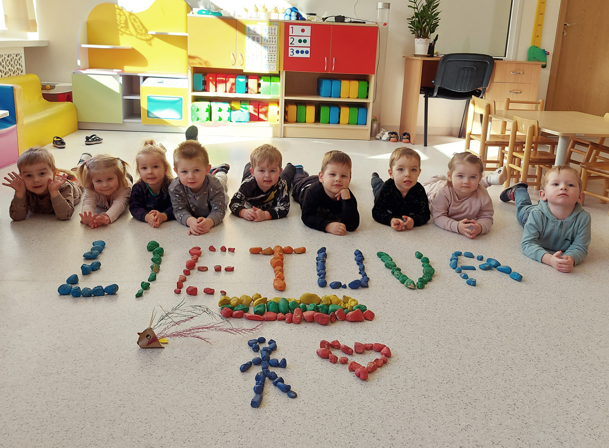 Nors mūsų vaikiukai nuo 1-erių iki 2 -ejų metų, tačiau labai džiaugiamės galėdami dalyvauti konkurse. Šia ypatinga proga sudėjome akronimą ir siunčiame iš tyrelių kamštelių sudėtą brangiausią žodį.