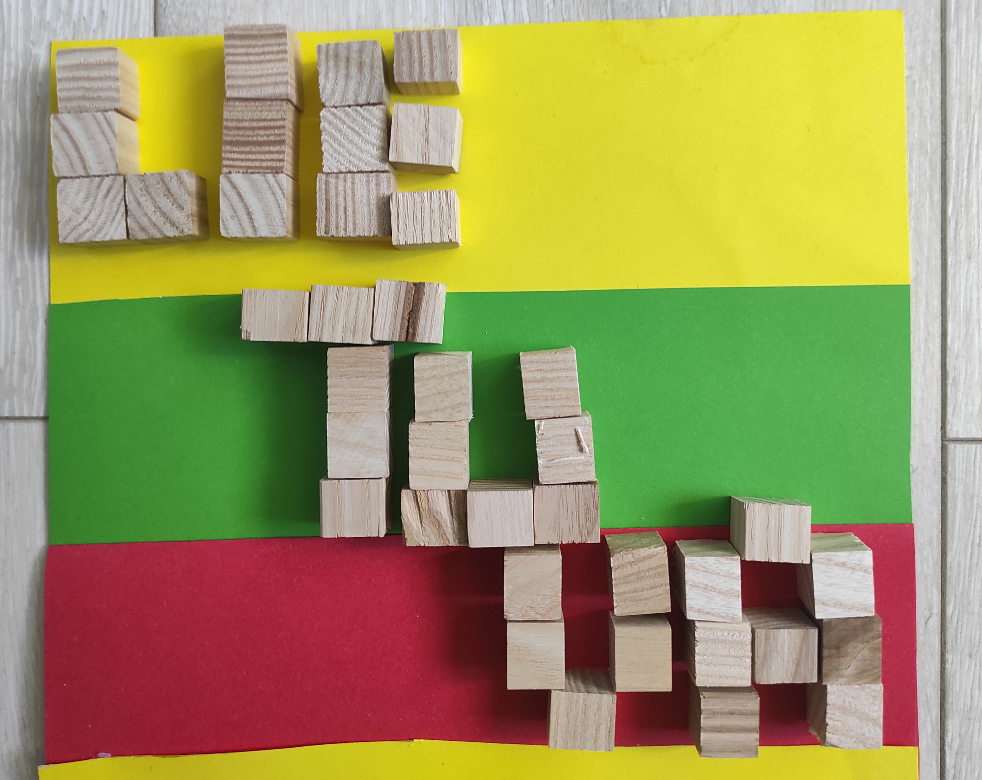 Mūsų mažųjų konstruotojų sudėliotas Tėvynės vardas. Mokytoja Ingrida Donielienė