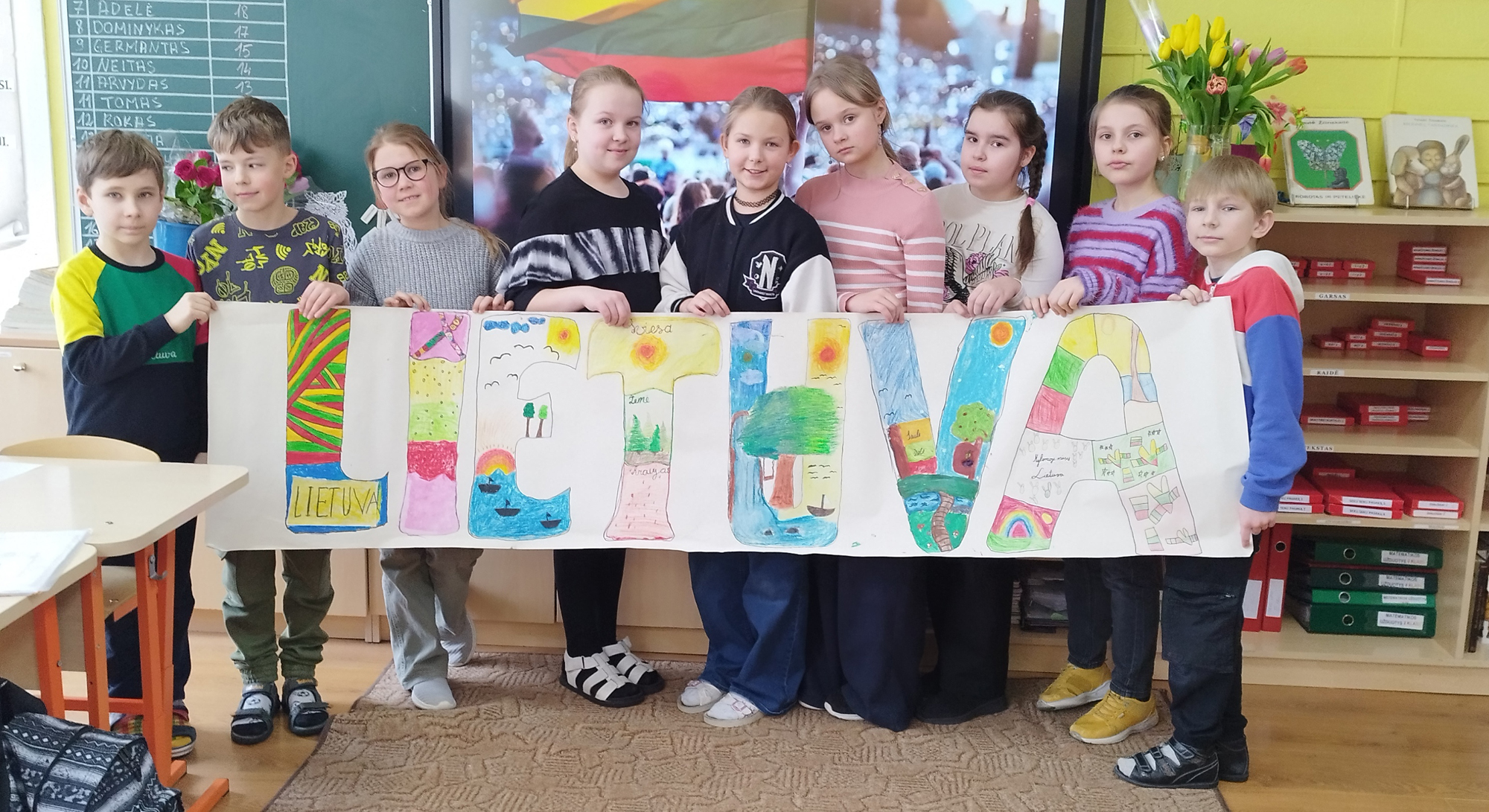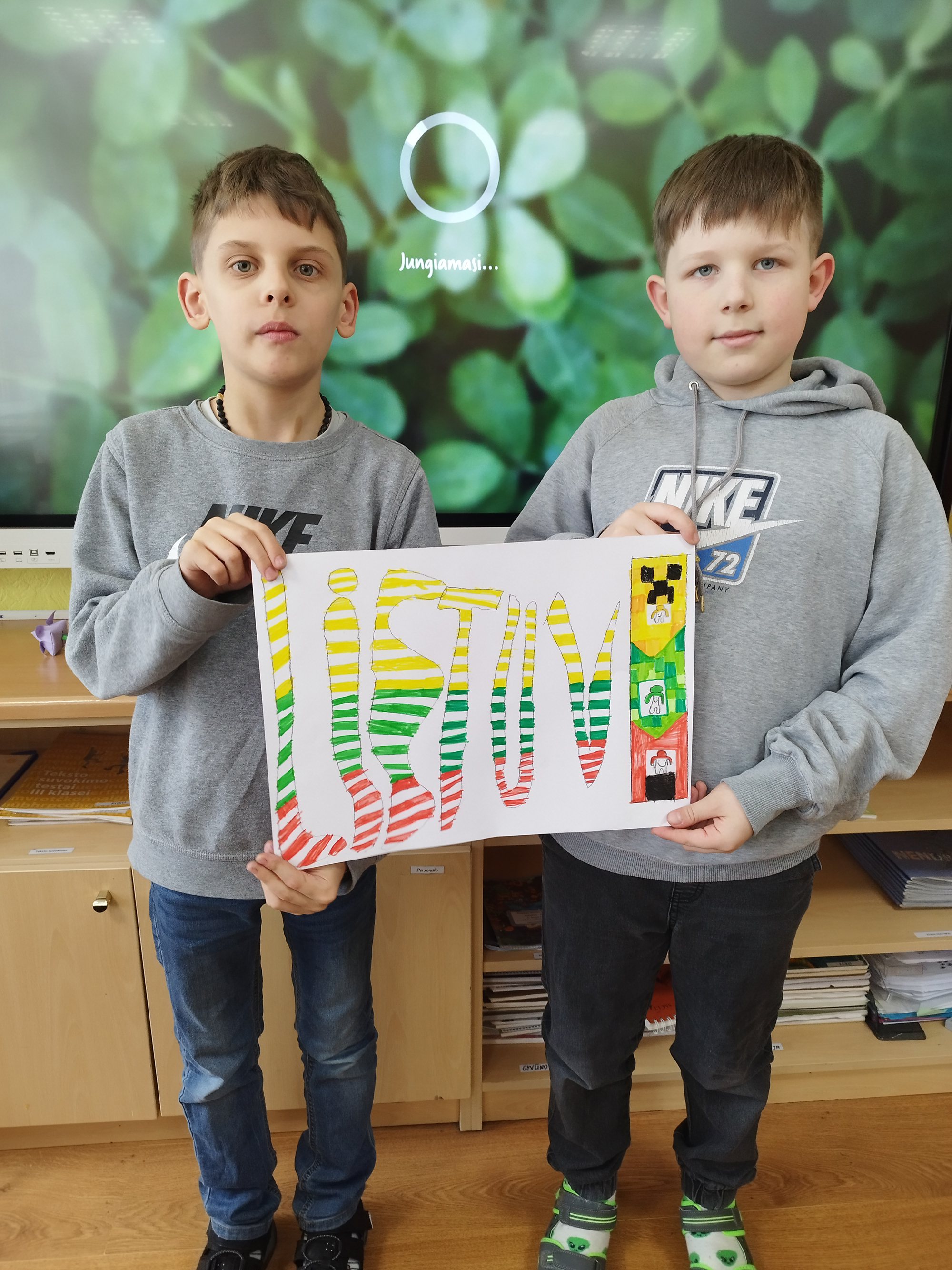 Kiekvienas ketvirtokas gražiai užrašė žodį LIETUVA ir savo darbus įamžino bendroje nuotraukoje
